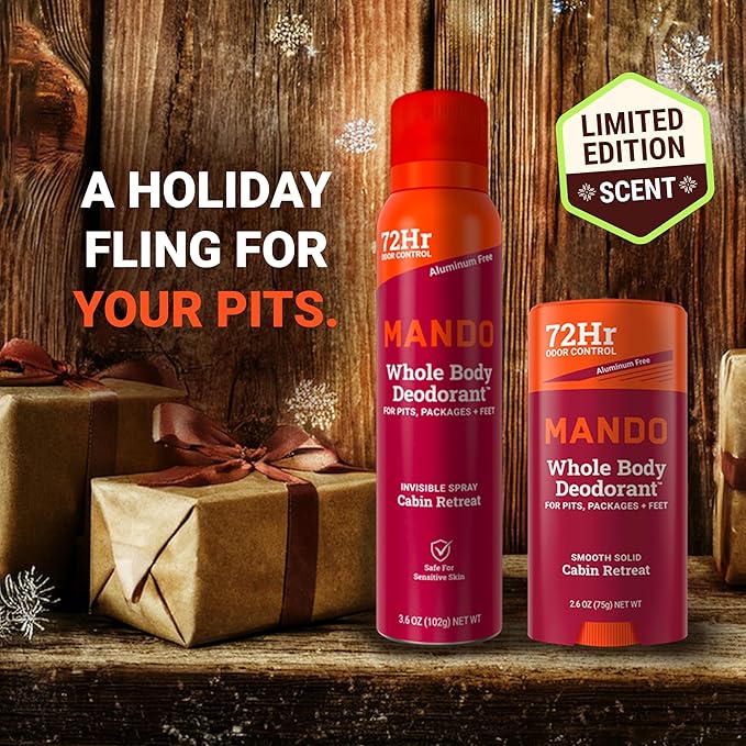 Mando Whole Body Deodorant For Men - Smooth Solid Stick - 72 Hour Odor Control - Aluminum Free, Baking Soda Free, Skin Safe - 2.6 Ounce (Pack of 2) - Cabin Retreat Limited Edition Scent