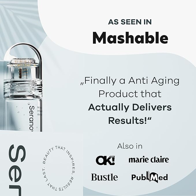 Seranova Micro Infusion System for Face & Neck 0.05mm Stamp with Hyaluronic Acid & Collagen Peptide Serum for Firmer Smoother-Looking Skin, Easy 5-Minute At-Home Skin Care Application - 2 Month Supply