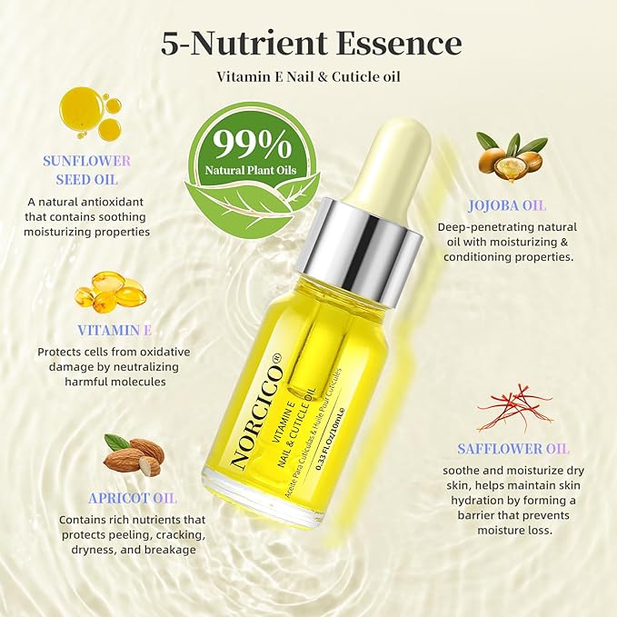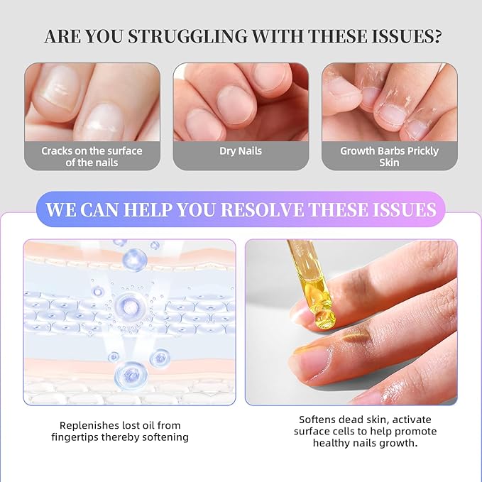 - Revitalizing Cuticle Oil for Nails Enriched with Vitamins, Infused with vitamin E and jojoba oil, this premium oil repairs cracks, prevents peeling, and stimulates growth. Lock in moisture post-removal for salon-worthy nail health between manicures.