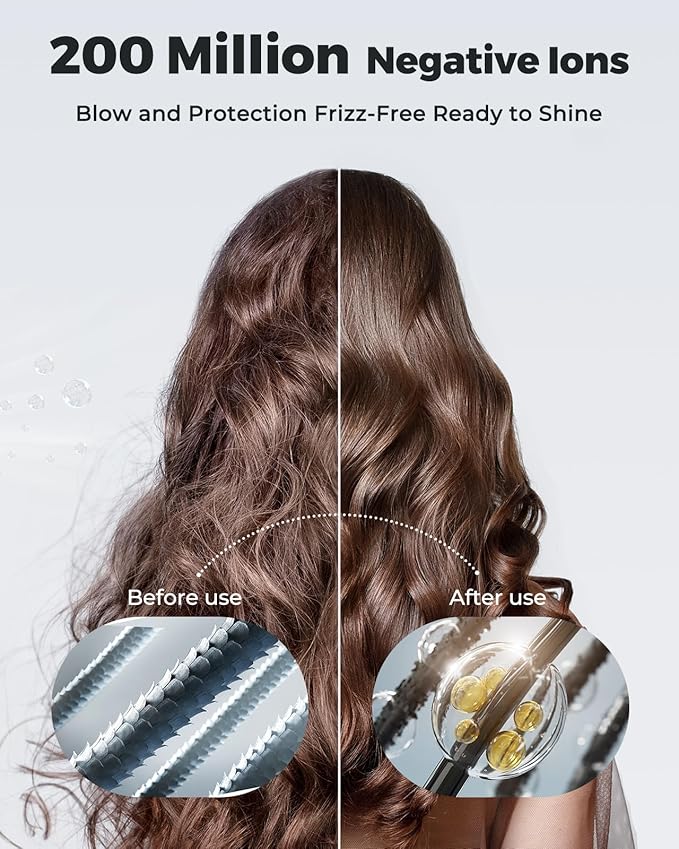 - Negative Ion Tech for Smooth, Shiny Hair: Advanced plasma dual-ion tech releases 200M+ negative ions, eliminating frizz and static. Instantly reveals smoother, shinier, and healthier-looking hair—perfect for curly or damaged hair.