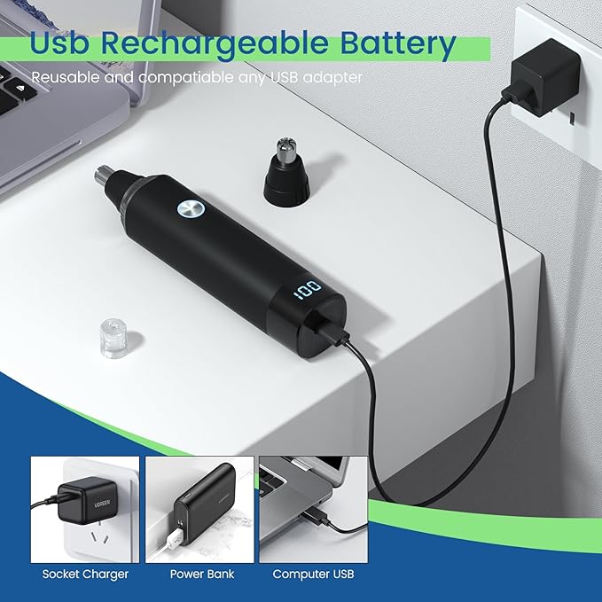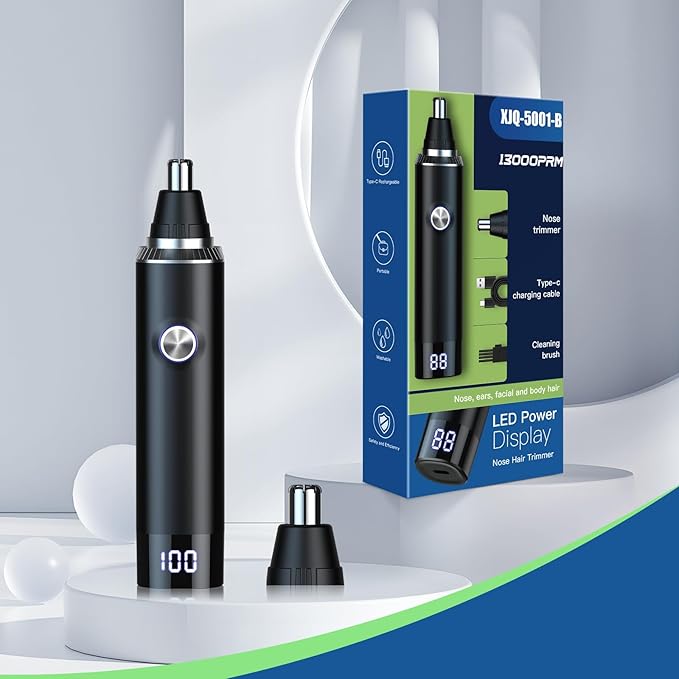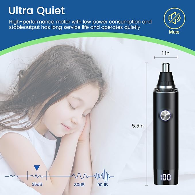 - Newly Upgraded Digital LED Display: This nose hair trimmer is equipped with a digital LED display, making it easy to monitor the battery level and avoid running out of power mid-use. Plus, its professional noise-reduction design keeps sound levels quieter than the buzz of a bee, ensuring a more peaceful grooming experience that won’t disturb your family’s sleep.