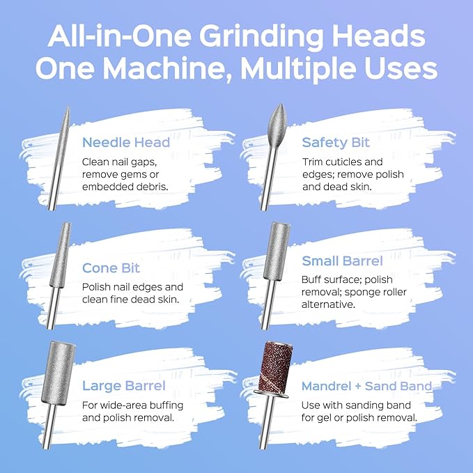 - Upgraded Storage with Hands-Free Use: This upgraded nail drill comes with a dedicated storage base that keeps every drill bit neatly in place and ready for use—no more searching through cluttered drawers. The new built-in back clip lets you attach it to your pocket or belt, making it easy to work while standing, moving, or helping clients. Ideal for nail professionals, mobile technicians, or anyone who values an organized, efficient workspace.