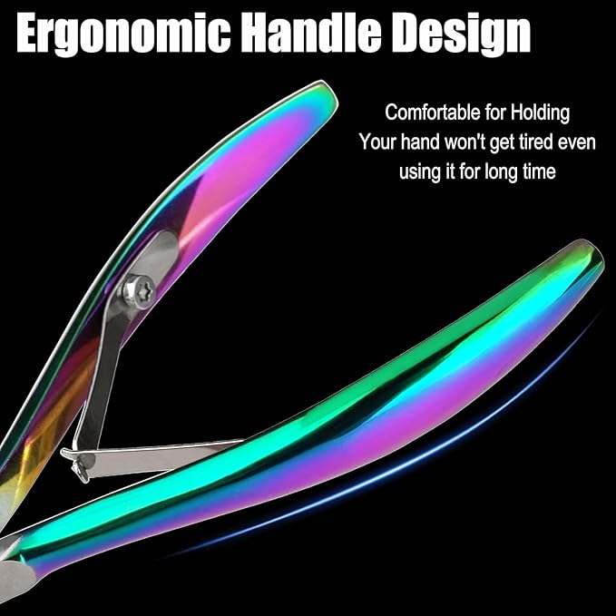 LePinko Professional Cuticle Trimmer kit, Super Sharp Dead Skin Clipper, Labor-saving Cuticula Remover for Fingernail Toenail, Home Salon Use, 7mm Jaw, Rainbow Color