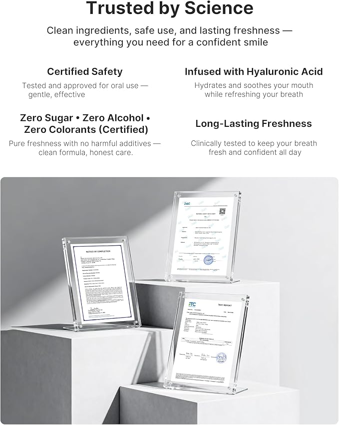 - 【Micron-Level Mist Technology】Features a 13 μm atomization aperture, 600 precision micro-fog holes, and 215,000 high-frequency sprays per second, delivering 89 million ultra-fine water ions. Covers the entire mouth in just 3 seconds without water droplets — ideal for dating, meetings, or social occasions to eliminate bad breath embarrassment instantly