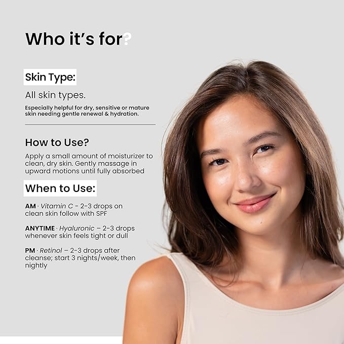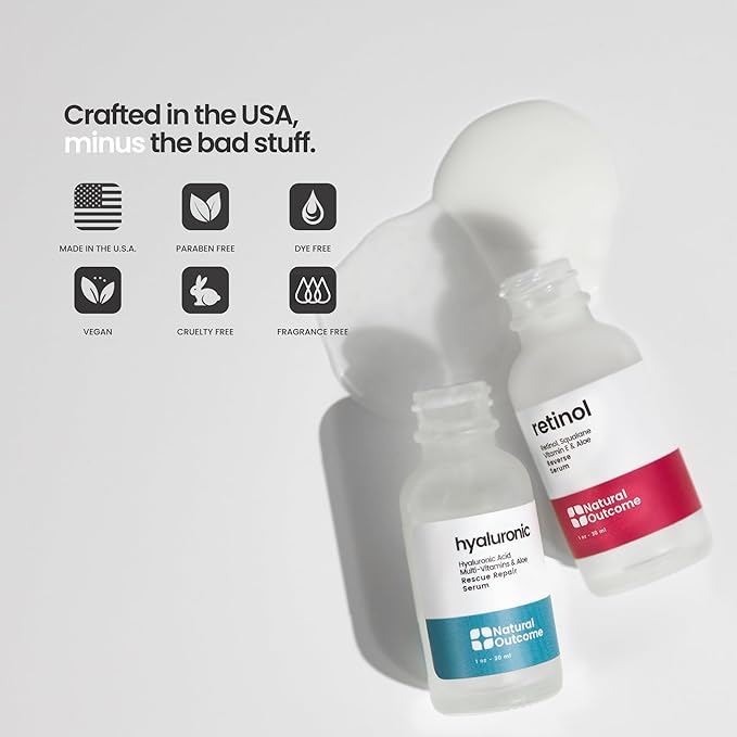 Natural Outcome Hyaluronic Acid, Vitamin C Face Serum and Retinol Facial Serum - Night and Day Anti Aging Facial Serum and Hydrating Serum Set 1 oz Each, Vegan, Cruelty Free & Fragrance Free