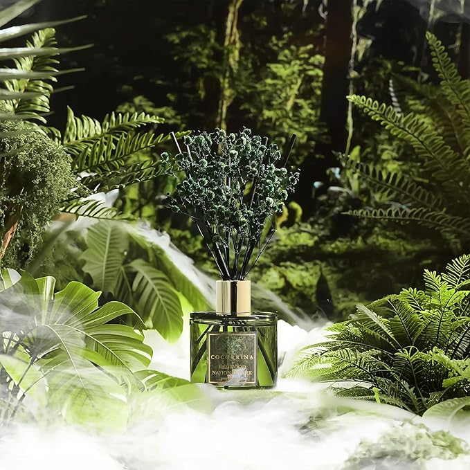 COCORRÍNA Reed Diffuser - Redwood National Park 6.7 Fl.oz Reed Diffuser Set with 8 Sticks & Preserved Baby's Breath, Reed Diffuser for Home Bathroom Shelf Decor