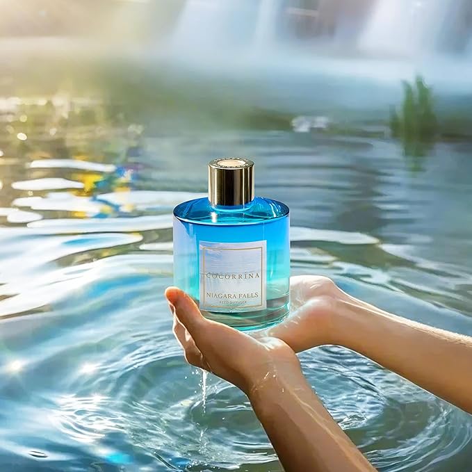 COCORRÍNA Reed Diffuser - Niagara Falls 6.7 Fl.oz Reed Diffuser Set with 8 Sticks & Preserved Baby's Breath, Reed Diffuser for Home Bathroom Shelf Decor
