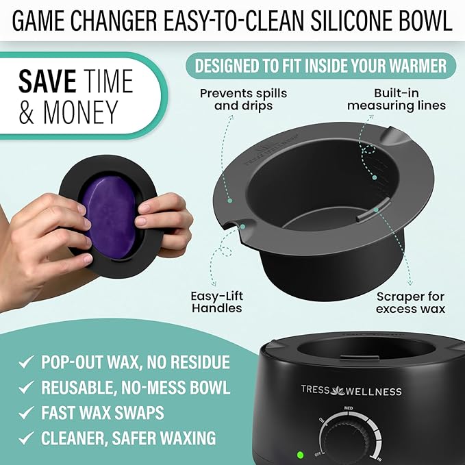 Tress Wellness Waxing Kit for Sensitive Skin – Safe for Face & Skin, Prep & Aftercare Wipes, Easy to Use – At-Home Kit for Face, Bikini, Brazilian & Full Body - Black, No Display