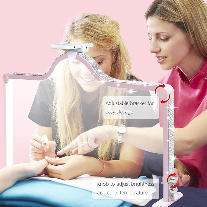 - Adjustable & Convenient - This nail desk lamp features a phone holder and adjustable arm, making it easy to customize your lighting angle and hold your phone for reference or client calls, enhancing convenience during nail tech tasks.