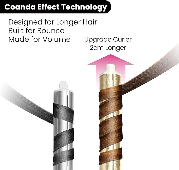 - 【Upgrade Longer Barrels - Perfect for Long Hair Curling】15% longer styling surface to wrap more hair, full-length styling from roots to ends in single wrap. Powered by a 110,000RPM motor (40m/s airflow), it creates curls 3X faster - no arm fatigue!