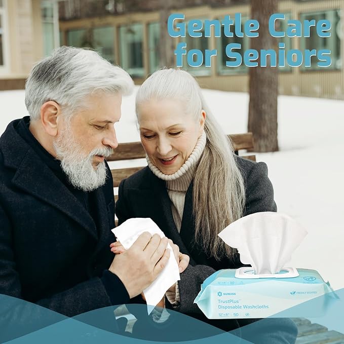 - Effective Gentle Cleaning: SUNKISS TrustPlus extra-large (8”x12”) wet wipes are expertly designed to deep cleanse any part of your body without causing any discomfort. The material is FSC-certified pulp, and their non-irritating synthesized fabric, along with the soft and strong design, makes these pre-moistened washcloths a great choice for all skin types, even for cleaning the adult perineal area.