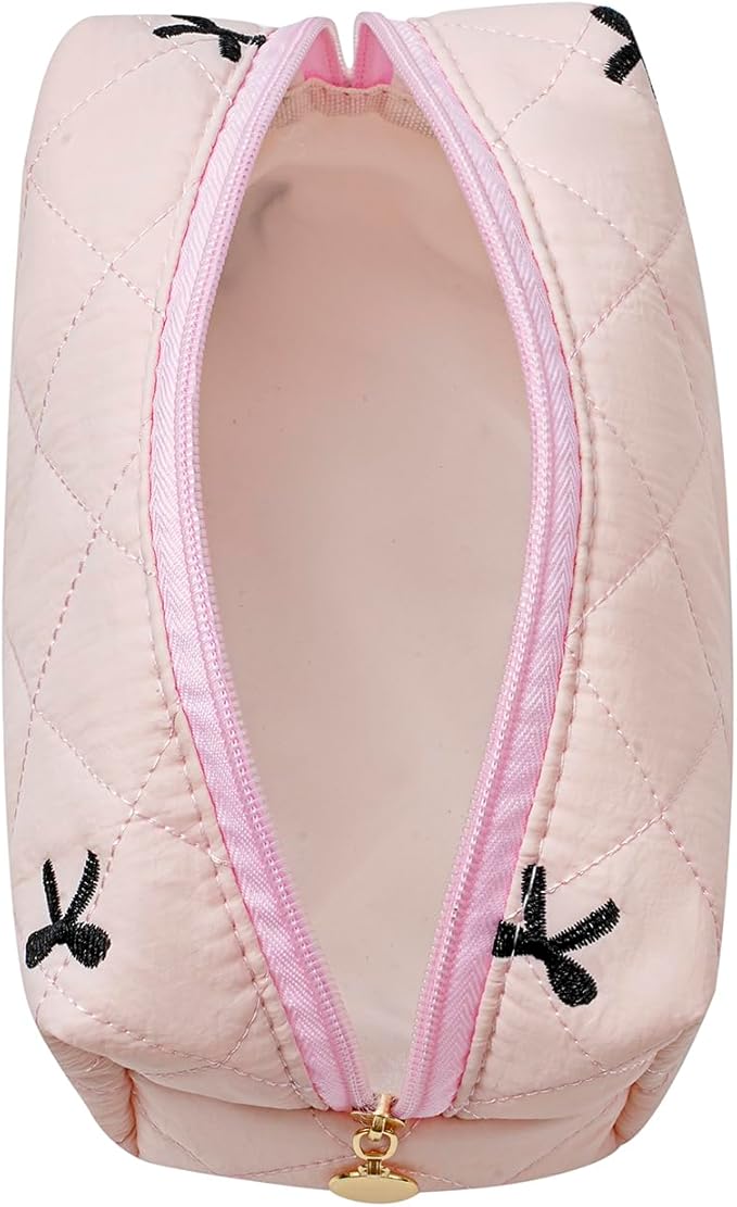 - ๐ Multi Purpose - The cotton quilted makeup bag can be used as daily handbags, cosmetics and skincare organizing bags, storage bags, and travel toiletry bags. The initial makeup storage bag can be used during travel because it is lightweight and does not take up too much space in the suitcase.