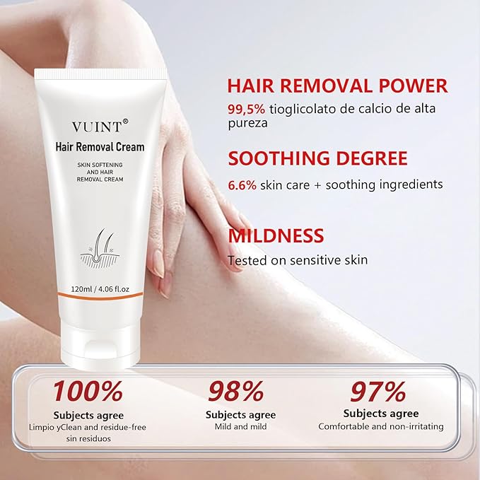- Fast & Painless Hair Removal: Vuint hair removal cream offers a quick, painless solution for removing unwanted hair on the body. It works by gently dissolving hair at the root, leaving your skin smooth without the irritation of shaving or waxing.