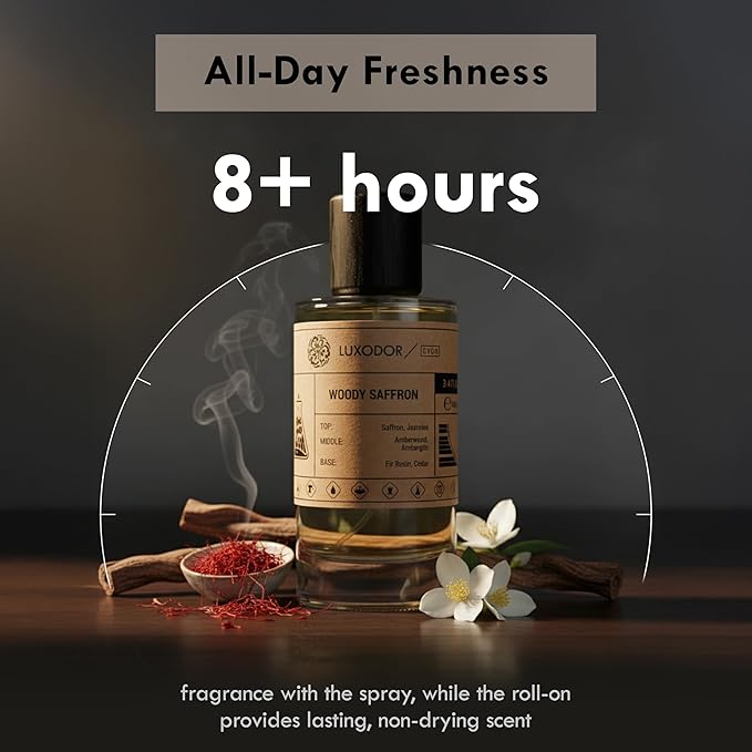 - Confidence that travels with you – Luxodor’s Woody Saffron is a TSA-friendly travel size companion designed for on-the-go lifestyles. This mini perfume fits easily into your carry-on, offering the richness of a designer dupe wherever you land. A sleek travel perfume that keeps your favorite perfume close—no matter the destination.
