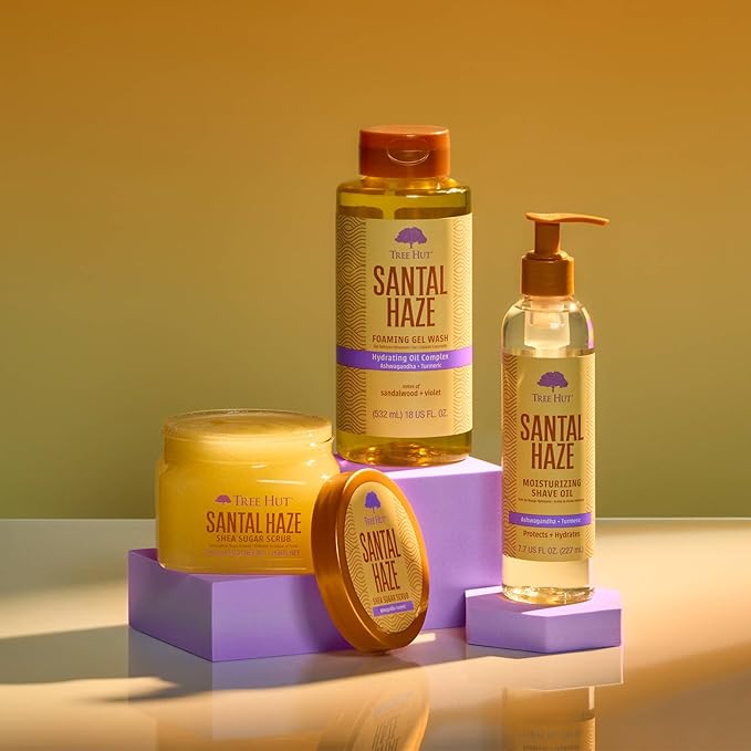 Tree Hut Santal Haze Shea Sugar Scrub, Exfoliating, Hydrating & Moisturizing Body Scrub with Shea Butter & Nourishing Essential Oils, Smooth & Soften Skin, 18 oz
