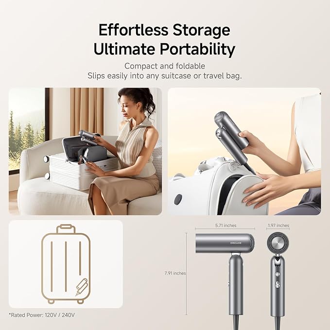 - Compact, Lightweight, Foldable—Perfect for On-the-Go: The Dreame Pocket Pro packs salon-level power into a slim 2-inch body that folds down to fit in your bag or drawer. Weighing just 10.6 oz, it's your no-compromise travel essential.