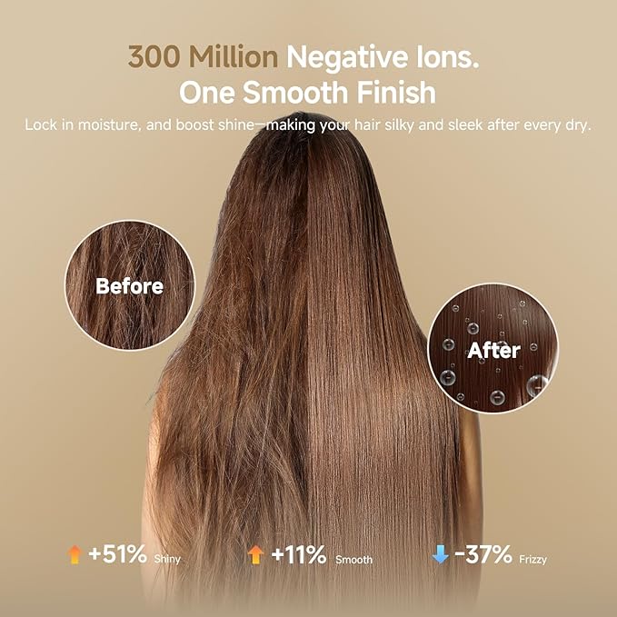 - Smart Heat Control + Ionic Care = Healthier Hair: 300 million negative ions tame frizz and add shine while built-in heat sensors check temps 300 times per second—keeping things safe and under 134°F (57°C) to protect hair and scalp.