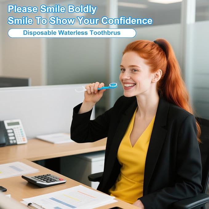 - 【No Water Needed for Instant Freshness】Specialty liquid gel toothpaste eliminates foam and rinsing. Pre-pasted soft bristles with mini toothbrushes with toothpaste neutralize odors instantly. Guaranteed to eliminate odors and freshen breath before a meeting/date.