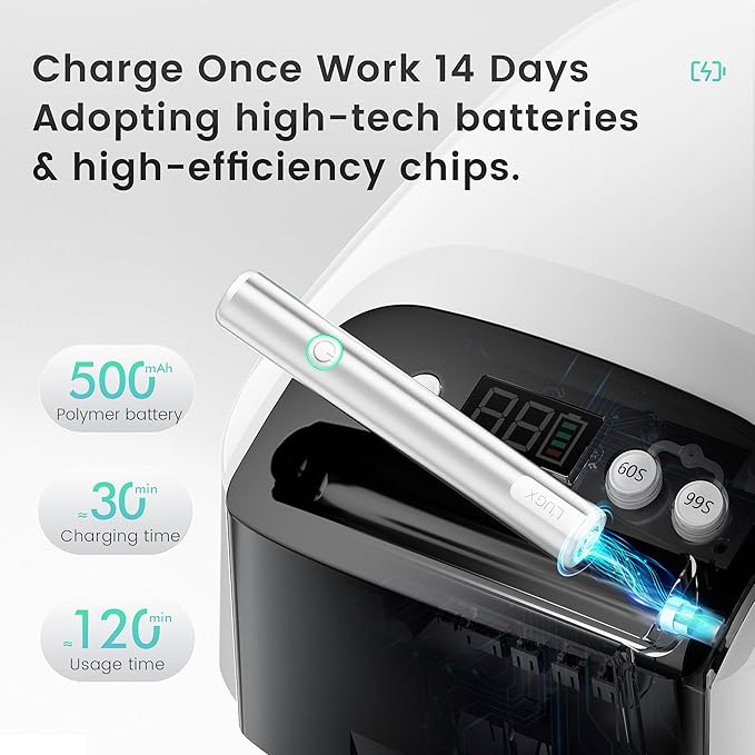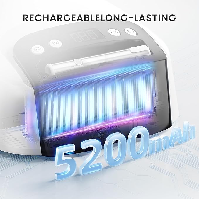 - 【Rechargeable & Magnetic Charging】 This L'UGX UV LED nail lamp is equipped with a 5200mAh large-capacity battery, which can be used for up to 9-10 hours after being fully charged. It is very convenient to use it anytime and anywhere. When the handheld nail lamp runs out of power, you can directly place it on the nail lamp to charge. Magnetic charging is simple and efficient. The best choice for nail art.