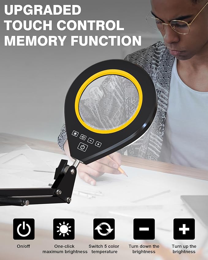 - Eye Protection Advanced LED Desk Magnifying Lighting - 5 modes (4500K-6900K) + 10 dimming levels with memory function for superior visibility; Zero flicker reduces macular strain by 70%