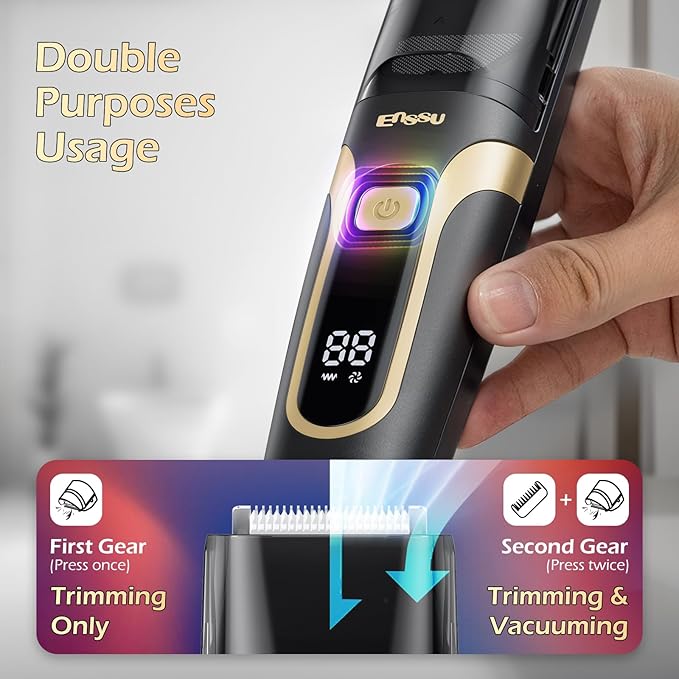 - ADVANCED VACUUM TRIMMING TECHNOLOGY: Our beard trimmer for men lets you groom without the mess. Its integrated super-suction vacuum mechanism easily traps cut beard hair in a built-in compartment, allowing for simple cleanup and disposal. Say goodbye to scattered beard on your sink and floors.