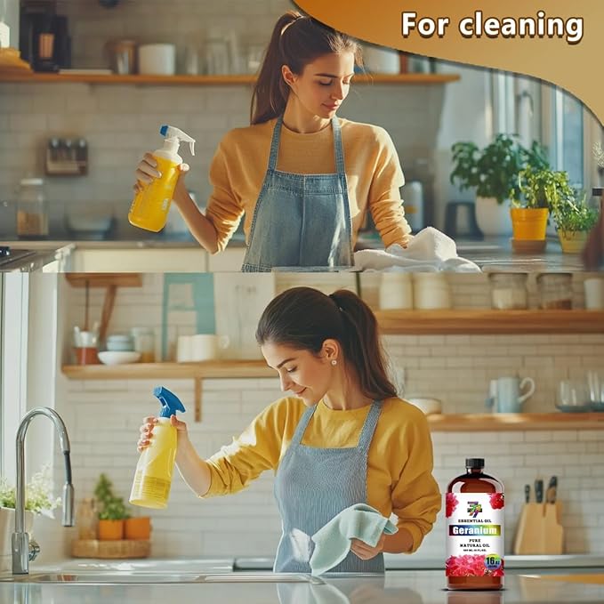 - METHOD AND USE RANGE:Mix Geranium Essential Oil with water (recommended ratio is 1:10) and add a few drops into an aroma diffuser to create a relaxing and pleasant atmosphere; it can also be used to make candles, soaps, lotions, and homemade cleaning products; Other Applications: humidifiers, aroma diffusers, home spa treatments, cleaning products, massages, yoga, and automotive diffusers