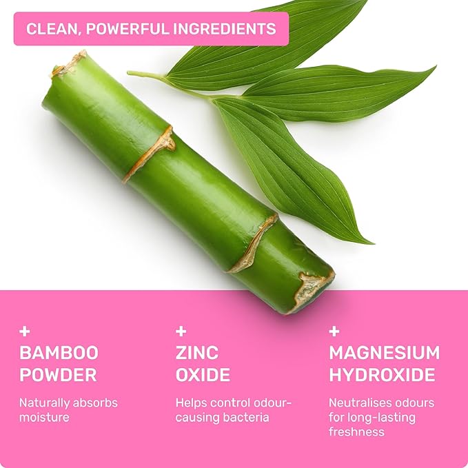 - SCIENTIFICALLY FORMULATED: Zinc oxide and magnesium hydroxide help prevent odors caused by bacteria. Bamboo powder helps underarms feel dry, while sweet almond oil and jojoba keep underarms silky smooth.