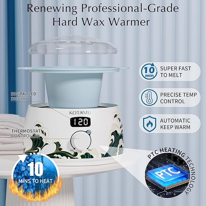 - 10 MINUTES TO HEAT - Uneven melting leads to brittle wax? Not anymore! KOTAMU wax machine features innovative PTC technology and an "Automatic Keep Warm" function, ensuring your wax beans always stays ready for serving! No wait, just smooth application
