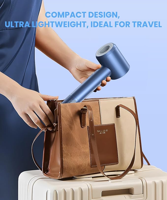 - 【Easy to Carry & Ergonomic Compact Design】This lightweight and portable travel hair dryer weighs only 0.9 lb, ideal for home and travel. With an ergonomic and compact design, it has a comfortable grip and simple operation buttons (Switch/Cool Air Mode/Wind Speed Setting/Temperature Setting). Perfect as a gift for your family and friends!