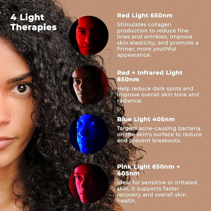 - GENTLE INFRARED AND BLUE LIGHT CARE FOR EVERY SKIN TYPE Experience the benefits of red, blue, and pink LED light therapy in one easy-to-use mask. This noninvasive, comfortable design helps refresh and brighten your complexion while seamlessly fitting into your daily skincare ritual.