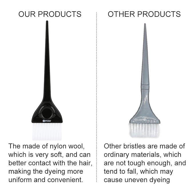 - Our hair color brush tool set use high quality plastic handle color hair Dyeing brushes are ergonomically designed, can be reused infinitely.