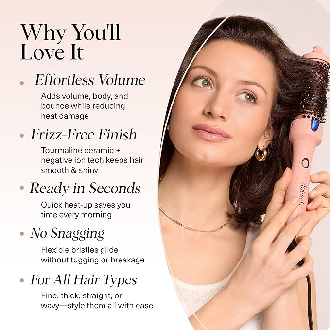 - LIGHTWEIGHT & EASY TO HANDLE FOR EVERY STYLE: Designed for comfort and control, this thermal brush features a lightweight handle and cool-tip design for easy maneuvering. Whether you’re lifting roots, shaping curtain bangs, or curling ends, it’s your all-in-one hair styling tool for salon-quality results at home.