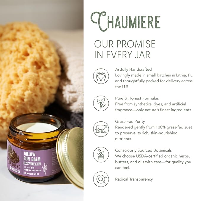 Lavender Tallow Sunscreen SPF 50 – Grass-Fed Beef Tallow Balm with Carrot Seed Oil & Non-Nano Zinc – Organic Face & Body Moisturizer, Reef Safe, Naturally Scented – 2.5oz, Made in USA