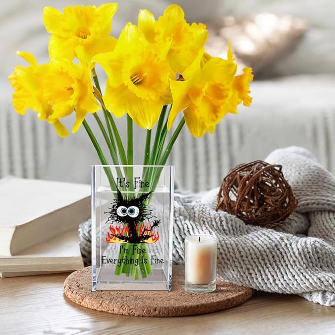It's Fine I'm Fine Acrylic Cosmetic Pencil Pen Holder Cup, Funny Black Cat Pen Holder Cup, Cat Lover Gift for Women Men, Office Sarcastic Gifts for Women Men Colleague Boss