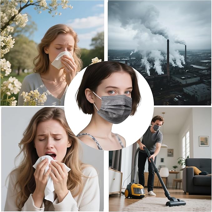 akgk 100PCS Grey Disposable Face Masks, 3-Ply Breathable Grey Face Mask For Adults