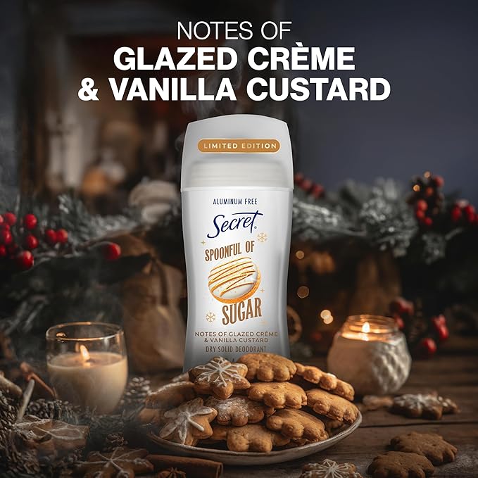 Secret Aluminum Free Deodorant for Women, 48hr Odor Protection with Pro-Hyaluronic Acid, PH Balancing Minerals, Holiday Dry Solid, Spoonful of Sugar with Glazed Crème & Vanilla Custard Scent, 2.4 oz