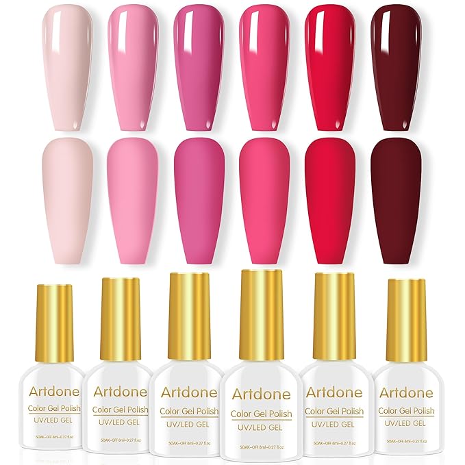 Artdone Sheer Gel Nail Polish Set Jelly UV Gel 6 Colors Translucent Milky White Pink Nude Brown Colors Nail Polish For All Seasons (Soild-Pink And Red)