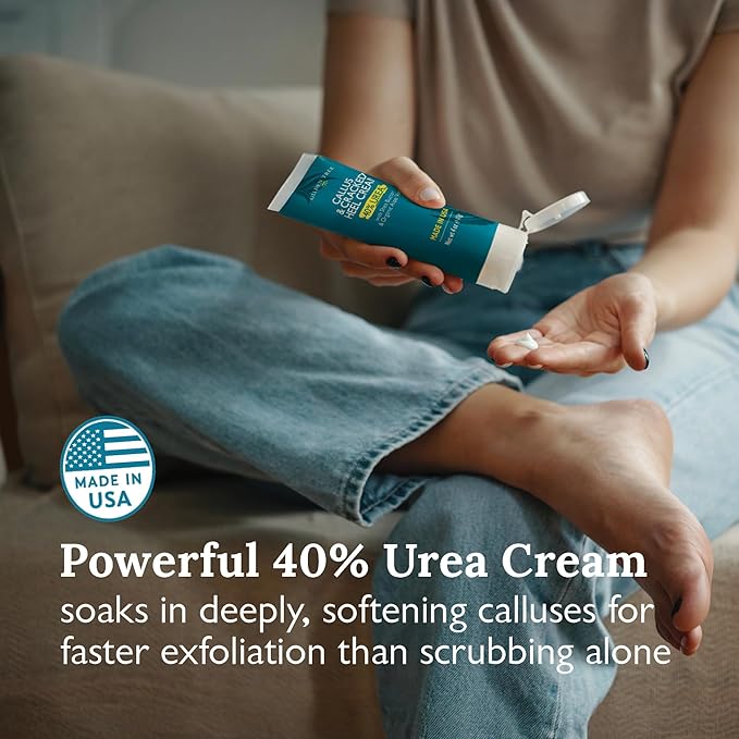 - Callus & Cracked Heel Cream: Our USA made foot cream for dry cracked heels and feet is fortified with powerful 40% urea to exfoliate calluses and enriched with organic aloe vera and shea butter to deliver intense hydration.