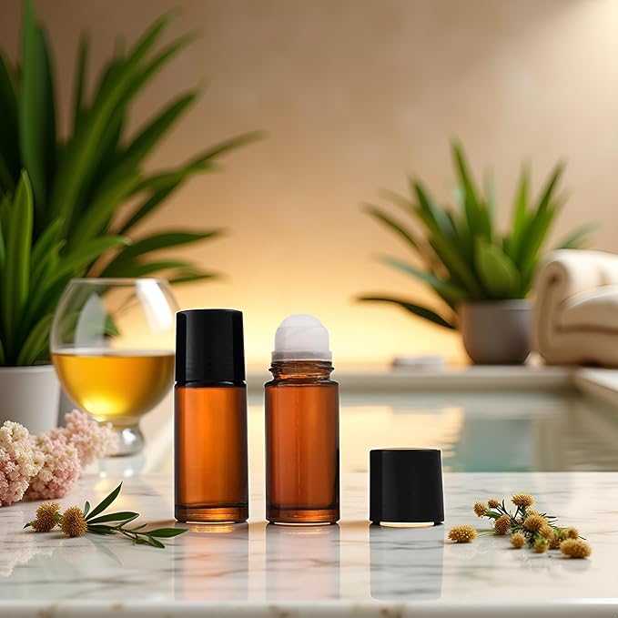 - CAPACITY: Each amber glass roller bottle holds 50ml of liquid, perfect for essential oils, fragrances, or cosmetic formulations