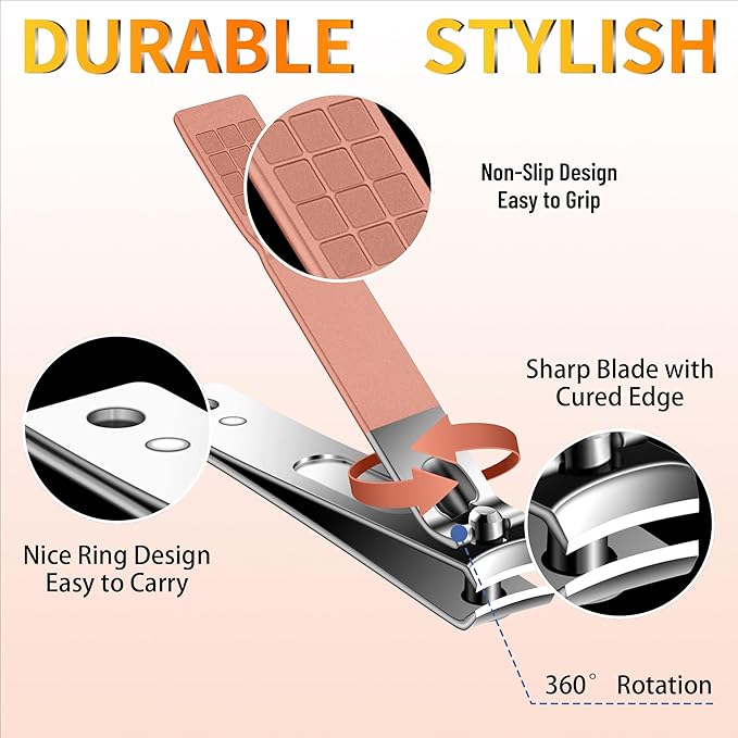 - Premium Nail Manicure Tools - The nail clipper set is made of high-quality stainless steel, and the finishing port ensures precision and longevity. Curved nail clipper can cut finger nails, Oblique Nail Clipper can trim dead skin, barbs and ingrown nails, large toenail clipper can cut thick/hard toenails. Remember to clean them after use to maintain their quality and extend their lifespan.