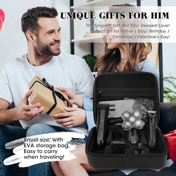 Beard Trimmer for Men Groin & Body Hair Trimmer, Nose & Ear Clipper Head Razors for Bald Men, 5 in 1 Waterproof Manscape Kit with Travel Case, LED Display, Grooming Kit Gift for Him