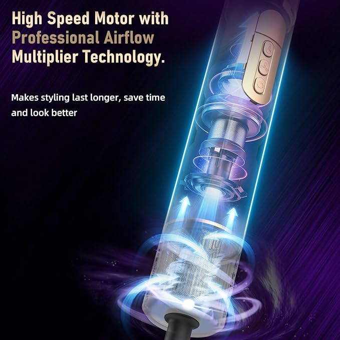 - Fast Drying & Heat Protection hot air brush: Enjoy rapid, safe drying with this hot air brush. Intelligent thermal control actively monitors temperature to prevent damage, while a powerful 110,000 RPM brushless motor generates up to 23m/s airflow.