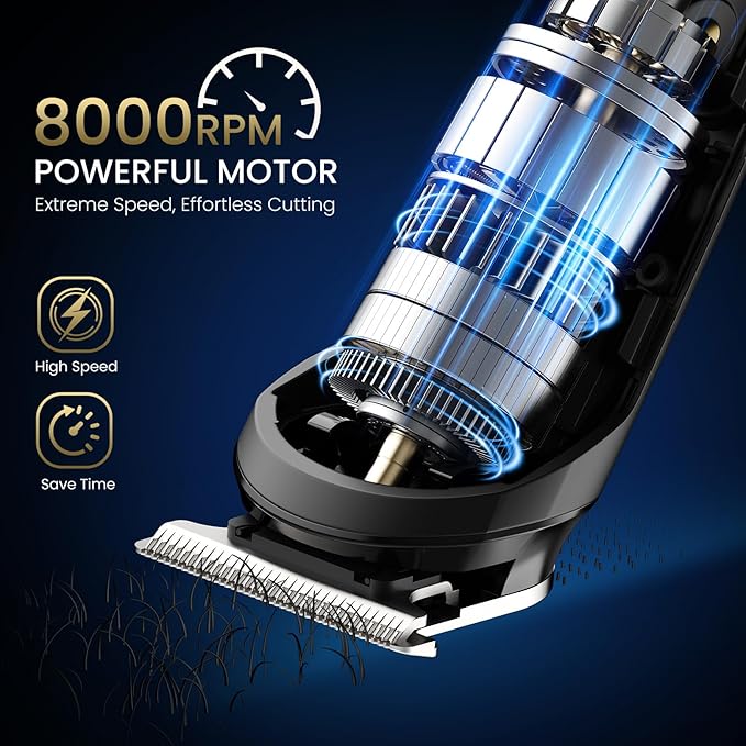 - Sharp Blades & Strong Motor: The sharp blades on this men's trimmer glide smoothly through thick hair without pulling or snagging. Its powerful motor offers adjustable speeds up to 8,000 RPM for fast, efficient cutting on all hair types, from coarse beards to dense head hair.