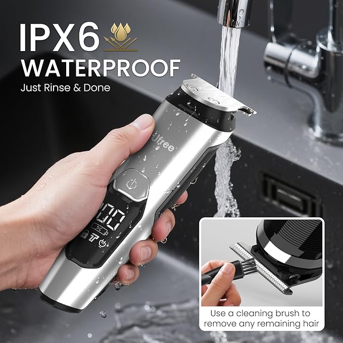 - IPX6 Waterproof & Easy Clean: Designed for wet/dry versatility, this mustache trimmer for men easily rinses clean under the tap after use, whether dry shaving or using foam. Clean the blades with the included brush, let the electric trimmer air dry, and occasionally apply a drop of oil to maintain peak performance. This men's shaving kit is built for convenience.