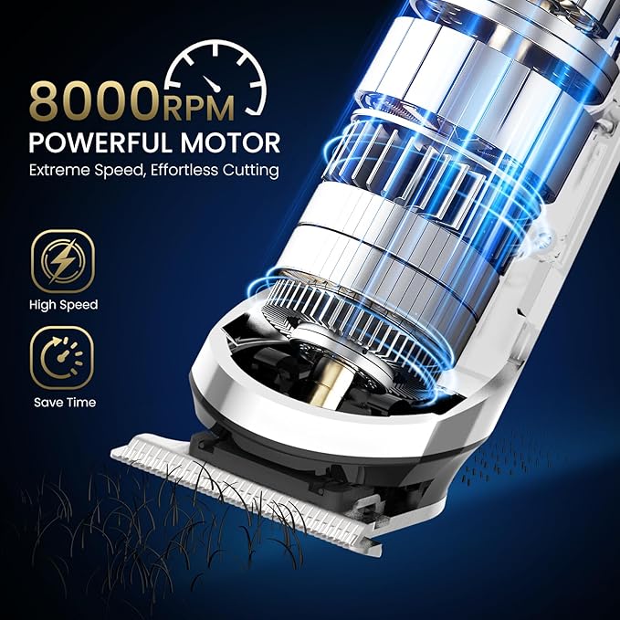 - Sharp Blades & Strong Motor: The sharp blades on this men's trimmer glide smoothly through thick hair without pulling or snagging. Its powerful motor offers adjustable speeds up to 8,000 RPM for fast, efficient cutting on all hair types, from coarse beards to dense head hair.
