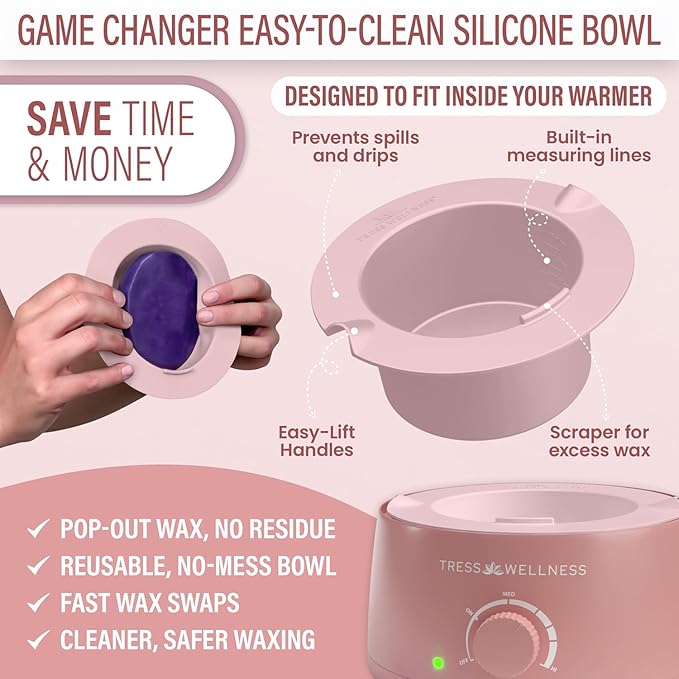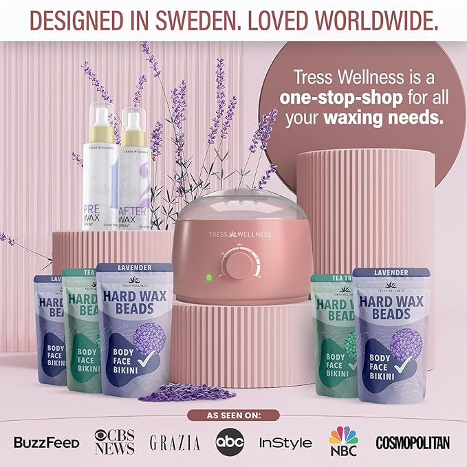 Tress Wellness Waxing Kit for Sensitive Skin – Safe for Face & Skin, Prep & Aftercare Wipes, Easy to Use – At-Home Kit for Face, Bikini, Brazilian & Full Body - Pink, No Display