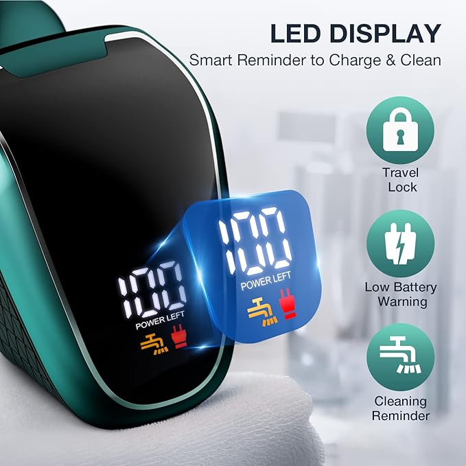 - LED Intelligent Display: The bald head shaver for men with LED display can accurately show the percentage of the battery power. Low battery reminder, water washing reminder more intelligent. Long press the switch button for 3 seconds to trigger the travel lock to avoid additional power consumption. This electric shaver uses 600mAh large capacity battery, 2 hours of fast charging can provide 60 minutes of working time. Please charge it in time for regular use