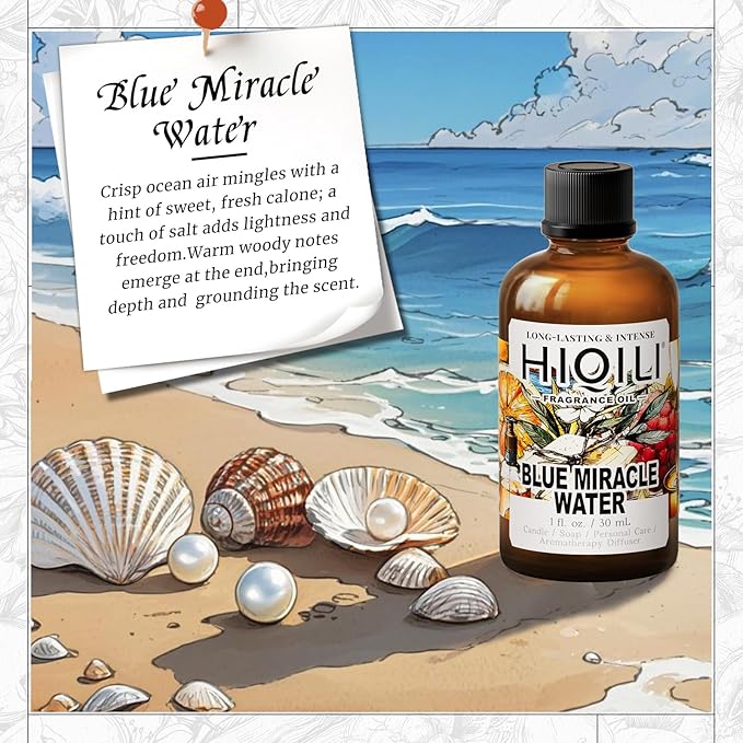 HIQILI Blue Miracle Water Fragrance Oil for Diffuser, Inspired by H.er-mes Ed.Mer-veilles-blu, Candle, Perfume & Soap Making, Crisp Ocean Notes, Long-Lasting Aroma - 1 Fl Oz