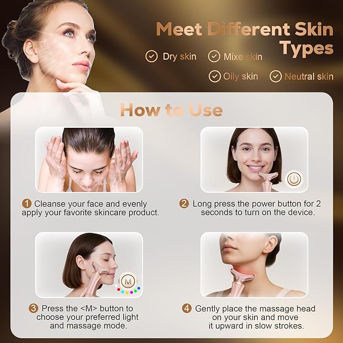 - Upgraded Technology: The 7 in 1 facial massager has three modes and 7 colors of light, suitable for all skin types, perfect for your daily skin care routine.