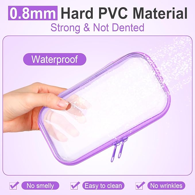 - Sturdy PVC Material with Smooth Double Zipper: made of 0.8 mm thick PVC, each clear hard storage case is durable for daily use; Dual zippers and reinforced edges ensure items stay secure and protected